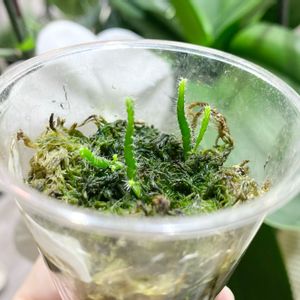 ホエレリがようやく4稜に✨ 大きくならなすぎて植え替えもしてないもんだから水苔が汚い😅 ギベルラの葉挿し3本だけ残りました🌵
