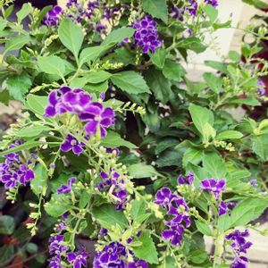 愛方が気に入り買って帰った😄 青紫の小さな花をしだれるように咲かせて、清涼感のある花姿が藤を連想させます😀 デュランタ・パープルラブ宝塚 クマツヅラ科
