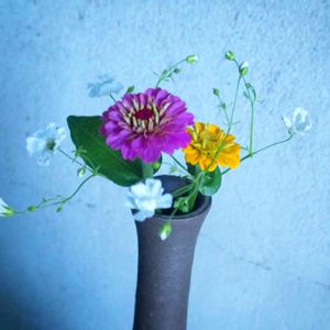 カスミソウ開花🎉 ・ ・ ・ カスミソウも開花してました、ただ 大輪のカスミソウを育ててしまった為、なんかイメージしてたキラキラ感がない😥 小輪ジニアと共に一輪挿しに生けてみました これはこれで、ええ感じやん😚 この大輪カスミソウは、カーペットカスミソウと似た花が咲きました
