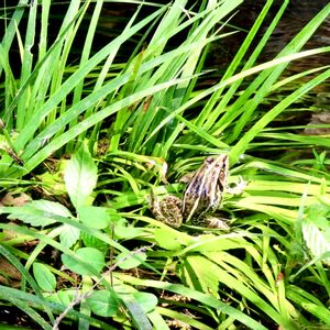7月のカエルたち 宮崎県の湧水池の辺り 2センチ位の小さなアマガエルやヌマガエルが飛び交う中、 一際大きなカエル🐸を追うと、、 トノサマガエル˗ˋˏ♡ ˎˊ˗ 5センチ位?