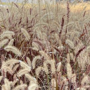 お気に入りの散歩コース🚶♀️…🍁 エンジ色に紅葉した"エノコログサ"、 陽射しを浴びた先っぽがキラキラしたゴールドに✨