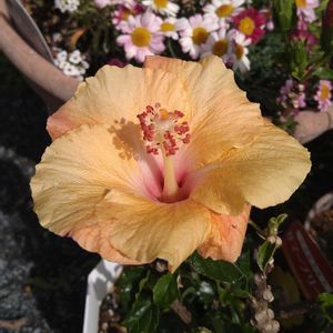 いい天気です🌞もちろん暑い これは残暑なのか…これから夏本番なのか…😥マサカナ うちで今咲いてるお花はこの子達だけです💦 ハイビスカス🧡💛スキ💗