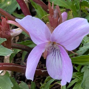 こんにちは😊 今日は嬉しい返り咲きの ヒゲコスミレ🌿💜🌿 ①側弁に控え目なツケマ👀 ②距は薄紫でフックラ💜 ③夏の三角形で大きい葉っぱのままです🌿 ④殆ど閉鎖花の中で 1輪だけ開花🌿💜🌿 ⑤閉鎖花は盛大に種を飛ばしまくってます🟤😆🟤 🏷️月曜日を爽やかに 🏷️ジュリすみれ 🏷️山野草マニア 先週のベランダで💐2025.10.28