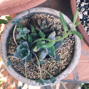 ちょっと前にスーパーの特価(150円!!)で買った植木鉢に何か植えたくて久しぶりに多肉狩りへ。欲しかった子持ち蓮華とピーチネックレスが入った多肉MIXをみつけてさっそく植替え♪