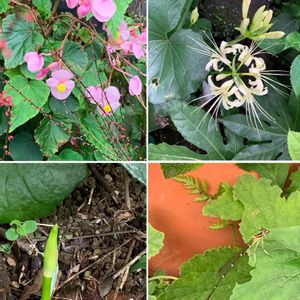 ひとつ前の投稿とは違う場所の白のヒガンバナ 庭の外から見えるところで、数年お休みしていた場所なので咲いてくれて嬉しいです😊 シュウカイドウもまだまだポンポンと咲いています 一昨年くらいに復活した赤いヒガンバナも芽を出して横にはぷっくりした球根が見えています うん十年潜んでいたとは思えない♪ イトトンボさんは今日は秋明菊の葉っぱにいました😚
