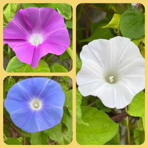 ご無沙汰してます(´∩ω∩`*)♡ アサガオが沢山咲いたので、去年の朝顔と、今年の朝顔をまとめて2枚、久々に投稿です🌺 その①2022年の昨年の朝顔✨🏵️💜🩵💙