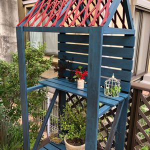 残暑お見舞い申し上げます。 長梅雨が終わったと思ったら 8月に入り酷暑 🥵 年々 暑くなってきてる様 体調には気をつけましょう(!) 暑くなり晴れ間が続いたので やっと (diy)プラントテーブル の完成^_^ 屋根(の)色は Husには不評です。 どうだろう(?)