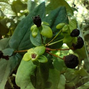 2020.8.13 今回初めて見た。 最初、分からなくて、よく見ると葉がキンシバイやビヨウヤナギに似てる。 帰って調べたら当たり❗️オトギリソウの仲間で、コボウズオトギリでした。 花は終わってるけど、大きな黄色い花が付くみたい🌼 この実の姿が小坊主君の頭に見えるのでつけられた名前だとか😆