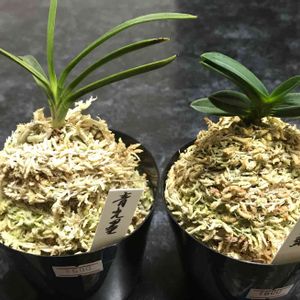 GW中の戦利品。 とっとり花回廊の売店にて。 フウランが安かったので。 『実生豆葉』と『青光墨』 フウランの品種は詳しく無いので葉の形と名前で気に入ったのを購入しました。