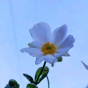 白い秋明菊を 青空に透かすと 空色に染まりました 爽やかな風吹く朝に 物騒なニュース 祈りながら空を見てます