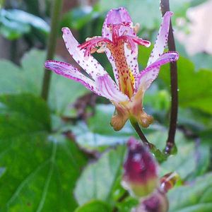 降ったり照ったりしています ひんやり、しっとりした空気に包まれてます 去年、地植えしたホトトギス 咲いてくれました
