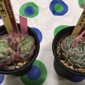 おはようございます😊 昨日は歩いて疲れたせいか… 子供より早く寝てしまいUP出来ませんでした😓 四国造園での購入品 ミックスべリア3つ グラウスとリガー(おらいさん苗) 90プラステラ白1個15円を20個 諭吉さん飛びました💸💸💸💸 多肉さんに諭吉さん使ったの始めてです🤣 グラウスとリガーで1000円ちょい 鉢は20個で300円ちょい なので😅ほぼミックスべリアのお値段😓 まぁ。うっぷんばらしもありますし🥳 新松戸から1時間かけて行ったからには… 私的には大変珍しくアクティブ🥺 手ぶらでは帰りたくなかったし💨 ハギさんにも会えたし ↑ ハギさんは私なんてぜんぜん知りませんが💧あのハスキーボイスと笑顔と人柄にファンです😊 大満足💨💨 ちなみに…私がねらっていたミックスべリアは…。 桜子・梅子・ウエディングベル・恋煩い でした😅 1つもなかった💧 私が購入できた💨ももりんも数が少なくなっているようで…だいぶ小さくなってしまったそうです😣