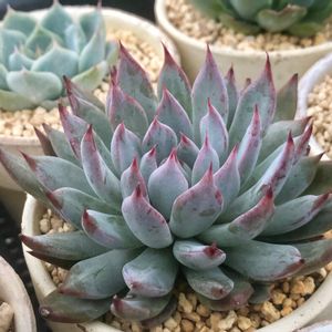 ざわわ×黒爪ザラゴーサ この季節でも美しい株姿。今は青札ですが昔は「O実生」と書かれた札で、『Oって誰なんだろ』と思ってました。しかしヤフオク凄い事になってますね…。 #多肉植物 #succulents #エケベリア #echeveria #ざわわ #黒爪ザラゴーサ #おらいさん苗 #鶴仙園