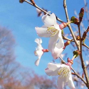 庭のマメザクラが咲いてきました🌸🌸🌸 別名…フジザクラ・ハコネザクラ(日本固有種) 少し俯きがちに咲くことから、オトメザクラとも呼ばれるそうです。