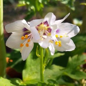 白いポレモニウムだと思いお迎えしたお花、優しい色で咲いてきました。長い雌しべとオレンジの雄しべが可愛いですね✨🤍💕🌿