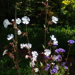 ホワイト・キャンピオン(シレネ・ラティフォリア) 暑さ寒さに強い多年草タイプのシレネ、春から秋まで真っ白の小花を咲かせてくれます。こぼれ種で増えるそうです〜嬉しい🤗🤍🌿 紫のお花はギリア・トリコロール、昨年お迎えして素敵だったので、寄植えに入れました💜 ここには写っていませんが、下にはイエロークローバーを✨💛☘️ モリモリになったらまた見て下さいね〜♪