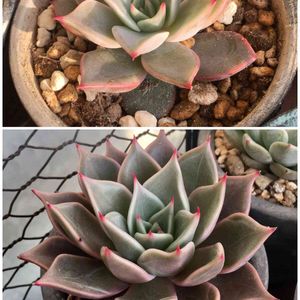 仕事帰りに鶴仙園西武店に寄って来ました😌 ひときわ目を引くエケベリアが🧐 コロラータxラパス🌱 あまり美しかったので持ち帰りました✨