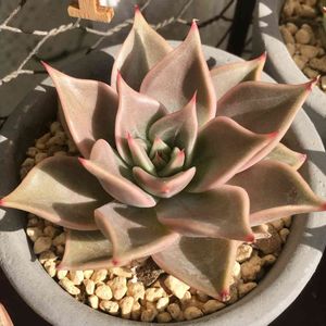 ざわわ×黒爪ザラゴーサ この季節でも美しい株姿。今は青札ですが昔は「O実生」と書かれた札で、『Oって誰なんだろ』と思ってました。しかしヤフオク凄い事になってますね…。 #多肉植物 #succulents #エケベリア #echeveria #ざわわ #黒爪ザラゴーサ #おらいさん苗 #鶴仙園