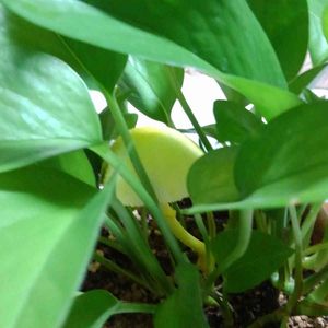 ポトス 良く見ると、いつの間に白いキノコが出て来ています😨