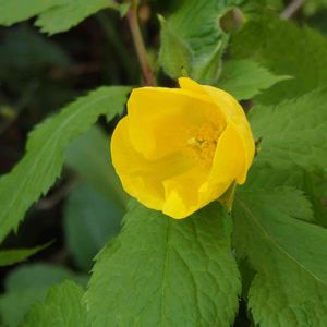 シラユキゲシ(白雪芥子) 木陰でうつむき加減にひっそりと 1株か2株植えたのが 今では庭の全域に陣地を広げてます 姿に似合わず繁殖力旺盛