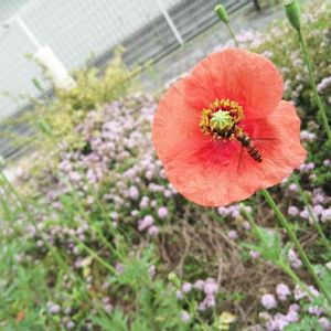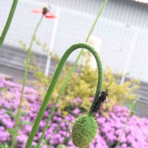 このナガミヒナゲシの横に、 シロバナカラスノエンドウがあったのに、抜かれてた(TT) ナガミヒナゲシはええんか〜❗ ヽ(`Д´#)ノ あ、でも、ホソヒラタアブが遊びにくるから、ええんよ💕
