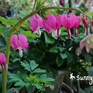 華鬘草【タイツリソウ】キンポウゲ目 ケシ科 ケマンソウ属 数年前に、深谷市のオープンガーデンのお庭で初見して、以来欲しかった!植物ですが、一月ほど前園芸店で、数㎝の小さな苗を見つけ即、お持ち帰り。即日大きめの鉢に植え替え。 水遣り一日置き、液肥、花付き用肥料、バットグアノで、簡単に開花! 10㎝なくて育つかなと思いましたが、一つずつ順番に可愛い花をつけています。 9月頃には地上部が枯れて休眠。 lamprocapnos spectabilis Fukuhara