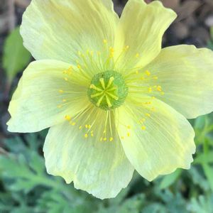 レモンイエローで透き通る紙細工のような 可憐なお花😌 背丈はせいぜい15センチ位の小さな子🌼 細かな種を沢山つけてよく増えますよ😊