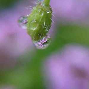 朝撮りたて✨ ナガミヒナゲシの蕾 小雨の雫の中に ロンギカリウスタイム ナガミヒナゲシ ケシ科 ロンギカリウスタイム シソ科