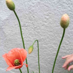 ナガミヒナゲシ 近所のあちこちでポンポン開花中😊 毛むくじゃらの蕾から咲くお花✨ 可愛いなぁ💕
