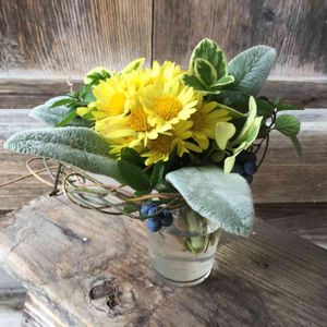 手前のアレンジは山形の食用菊「もってのほか」です。こんなふうに使うのはもってのほかじゃ、と言われそう。食べても飾ってもいいというのはハーブと同じですね。