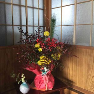 お正月のアレンジです。 我が家の南天がメインです。 難を転 じることができますように!