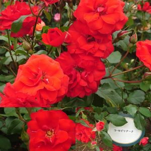 5/11㈫② 🏷真っ赤な火曜日 薔薇 ラ セビリアーナ 🇫🇷フランス 中輪(約7cm程度)、微香 耐寒性耐暑性に優れ、丈夫です。 修景バラとして公園、グランドカバーとして活躍します。 生田緑地ばら苑へのアクセスロード五ヶ村堀緑地に沢山咲いていました🌹🌹🌹🌹🌹❣️❣️ 生田緑地ばら苑には 秋にピンクセビリアーナが咲いていました。四季咲きですので春も咲いているでしょうね😄💗💗💗