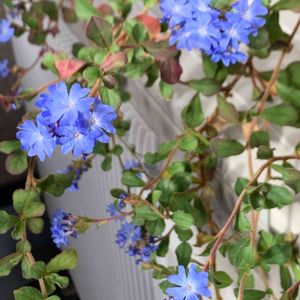 いただきもののブータンルリマツリ! 一年目にしてほったらかしでこのかわいらしさ♡ これからもっと紅葉すると青と紅のコントラストで美しさアップとか。 何もしてないのにこんなに咲いてくれてありがとう😊