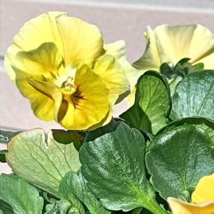 おはようございます😊 緑がかった微妙な黄色✨ 微妙な色のパンジーが 好きです。