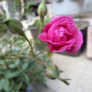 久ーしぶりすぎて🤭 やっと一輪ミニバラが咲いてきたー 😆🙌🎉 思ってた色とはだいぶ違ってるねー🤔 ジギタリスも大きな葉っぱ🌿になってきたので 安心してきた🙋♀️🎶