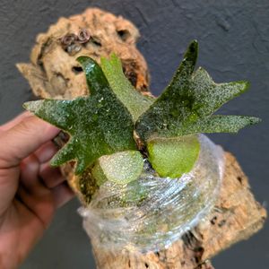 ウィリンキーバクテリア(スポア) ドワーフ系ビカクシダまだまだOCには手が出せませんがスポア株はだいぶ買いやすくなってきたので、晩酌してるとついポチってしまうことが度々😅 今回お迎えした株はちょうど貯水葉が出始めてるっぽいので早々に板付け♪ ⑤あと周りについてた小さい株も救出!このコ達もうまく育ってくれたらウシシ😁