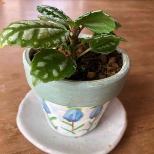 リメ鉢に合うかな🤔と、ダイソーで買った観葉植物❗️ 名前が付いていませんでした😅 教えてくださいね。 m&oさんに教えて頂きました。 ありがとうございました🙏