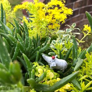 🎶象さんの散歩♫ 夕方の水やりをしてたら、セダムと何かな、松葉牡丹かな、その中の象さんに気付きました。 ジャングルを散歩してます。
