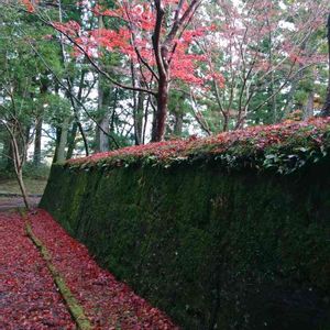 熊野古道を巡ってきました。 こちらは熊野本宮大社 旧社地「大斎原」 (おおゆのはら) その昔、神が舞い降りたと言うとても神聖な場所、 明治の大洪水までは12の社殿が横一列に並び人々はここで祈りを捧げたそうです 今はがらんとしていますが、とても神聖さを感じ不思議な空間でした。 ふぅ~としていると目に飛び込んできたこの景色 紅葉の木と落ち葉、塀の苔 この色合いがとても綺麗でした。 紅葉していた木は確か二本だけだと思います その一部だけの景色です