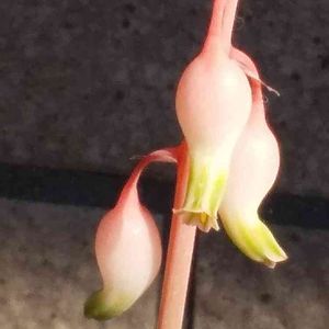 ガステリア 「子亀姫」 2/1投稿した姫がついに おちょぼ口を開きました( *´艸) 1.5㎝の小さな花です 花の周りに静けさを感じる優しい花です 16㎝茎を伸ばし6つの花