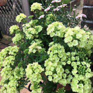 🎶 バーベナ・ラナイ アップルグリーン ♬ このライムグリーンに惹かれました💓 モリモリになって嬉しい(⁎˃ᴗ˂⁎)♡⤴︎⤴︎ でも…一緒に寄せ植えしたお花は別のが良かったかな…