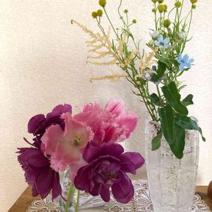 ♫ (,,>᎑<,,)カワイイ*•.❥* ♬ おはようございます☀ 右は前にupしたお花達、左は昨日、カット✂された🌷チューリップ! この色の組み合わせが、パステルカラー((( *´꒳`* )))♡