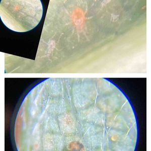 苺のハダニと、天敵のチリカブリダニ😆 上の少し赤いのが肉食でハダニを食べてくれます😚 顕微鏡と、携帯を付けてみれちゃいます😊