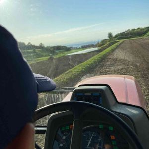 玉葱の後は、水稲😆 天気ええから、瀬戸内海の男鹿島から小豆島まで、全部見える〜😆 運転は、息子です🤣 下に見えるトラクターは、父で3世代でトラクター🚜乗り回してます🤣
