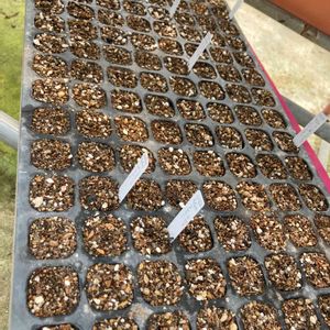 9/17播種した、雷神さんと奥は9/17パリーさんです😆 暑いハウスの中で葉焼けしながらデカくなってます😱