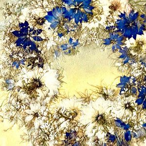 💙今日のお花💙 まだクロタネソウ咲いて いません😅 友達にいただいた押し花です