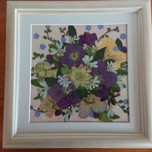 一人の お嫁さんには もう 小さな宅急便にて 送りましたが、もう 一人 お嫁さんが いるので、やっぱり もう 1 つ 小さな額を 昨日 買って来ました❣️ ちょっと 試しに 庭の花🌼を 本に 挟んでみただけなので、後 ほんのちょっとの お花🌼しか ありませんでしたが、、、ビオラ 1 つ と、黄色いプリムラ ジュリアン を 入れて 完成 。。 これも そのうち 、次男の お嫁さんに 送ってあげよう〜 ❣️