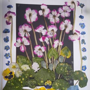 明けましておめでとうございます🎍 今年も宜しくお願いします😊 𝟐 𝟎 𝟐 𝟑 ✿🐇 押し花に使った植物 ❇︎よく咲くスミレ ❇︎ビオラ ❇︎シダ ❇︎アルテルナンテラ リトルロマンス ❇︎ニチニチソウ ミニナツ ストロベリー アレンジに使った植物 ❇︎ガマズミ ❇︎ヒベリカム ❇︎スプレーマム ❇︎スカピオサ ❇︎葉牡丹