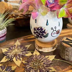 おはようございます😊 お庭のクレマチスでまる子。流♡押し花💝 アンティーク調っぽくしても可愛いかなぁ〜と(,,ơvơ,,) 落書き🥚(˙˘˙🥚)も久しぶりに登場♪ 𓈒𓂃꙳⋆ お庭の紫陽花をちょこんと飾って💚💜💚 お部屋での癒やしですぅ◌⑅⃝♡*ପ(੭ु ˘͈ ᵕ˘͈)੭ु✩◌⑅⃝♡* 今日も厳しい暑さになりそーですね😅 気合い入れて、元気に頑張って参りまーーーす‼️٩(๑ᵒ̴̶̷͈̀ ᗜ ᵒ̴̶̷͈́)و♬