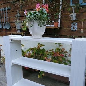 昨日投稿した白い棚、実は2つ同時に作ってました🔨 一つは室内に持ってきて さっそく たくさん置いてます〜😆🌿🌿 なかなかいいかも😊